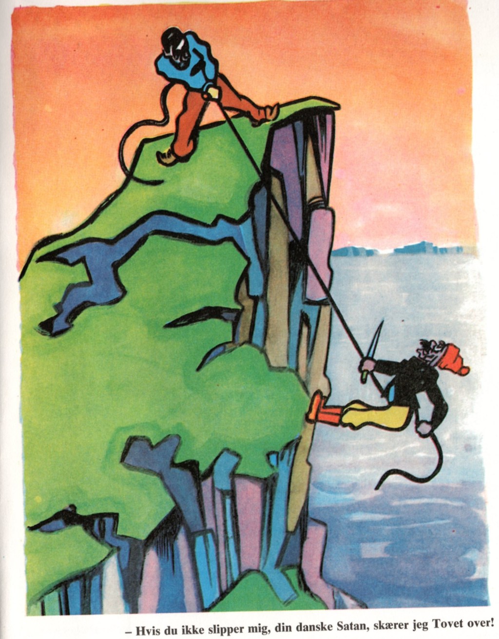Tegningen af de to mænd er en satiretegning fra 1946. Tegning var fra hæftet ”Svikmøllen”, som lavede satiriske tegninger.