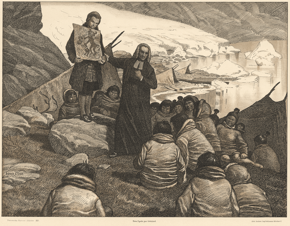 - Se kilde c. Hvad er der på billedet som Hans Egede viser grønlænderne? Hvorfor mon han viser det?